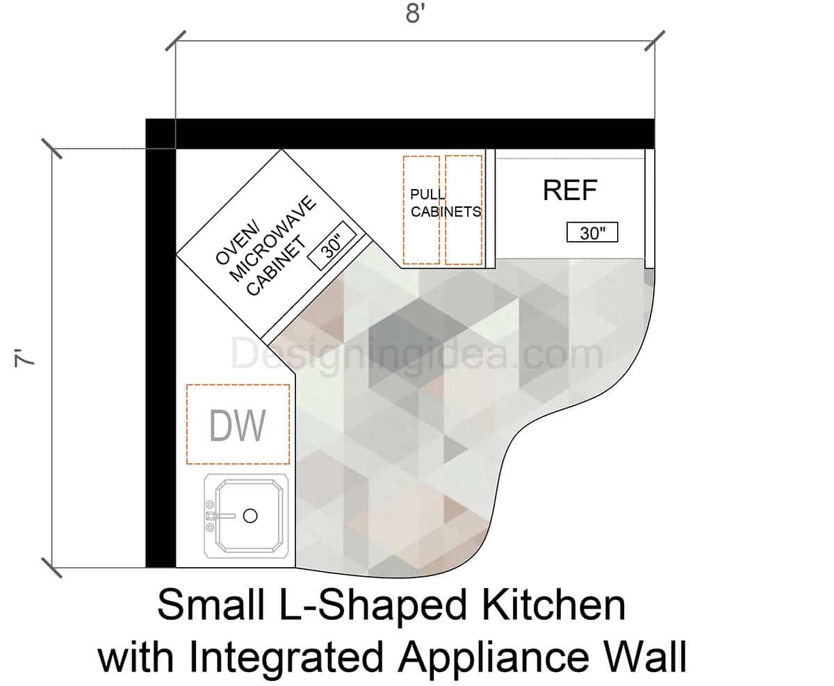 7×8 Compact Kitchen With L-Shaped Layout And Integrated Appliance Wall