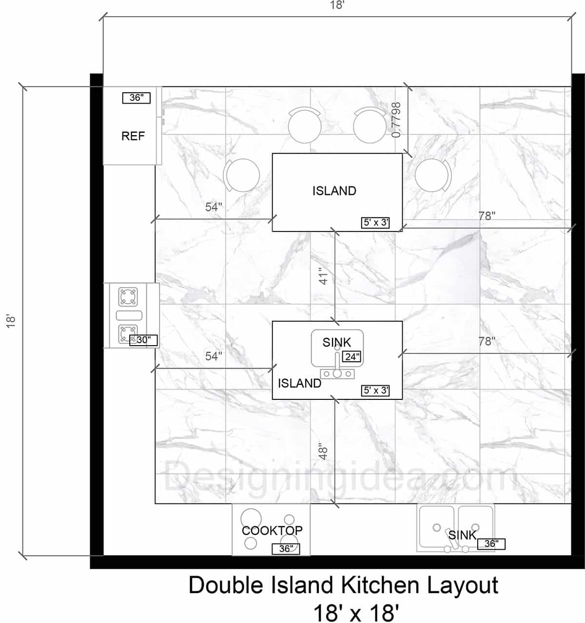 - Keep the 41″ inter-island gap. Maintain the large aisles if you plan on having extra people in the space.
